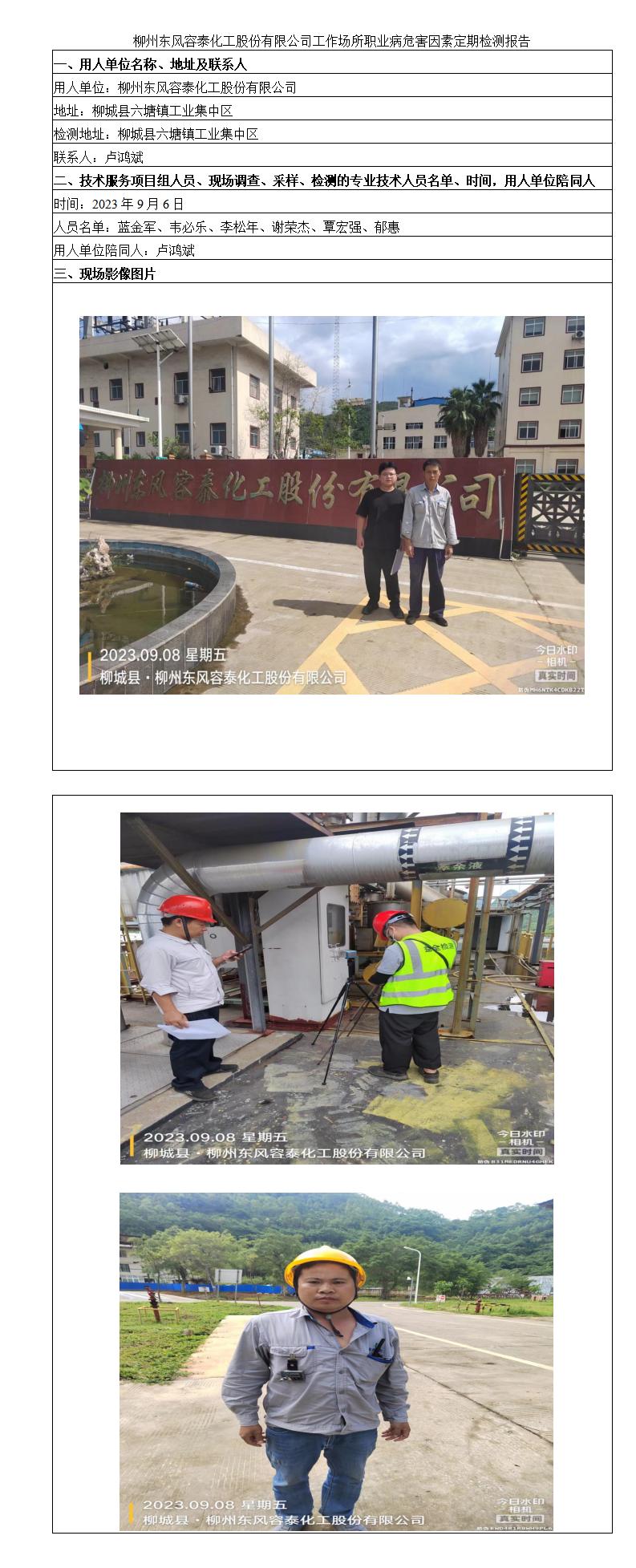 柳州東風(fēng)容泰化工股份有限公司工作場所職業(yè)病危害因素定期檢測報告