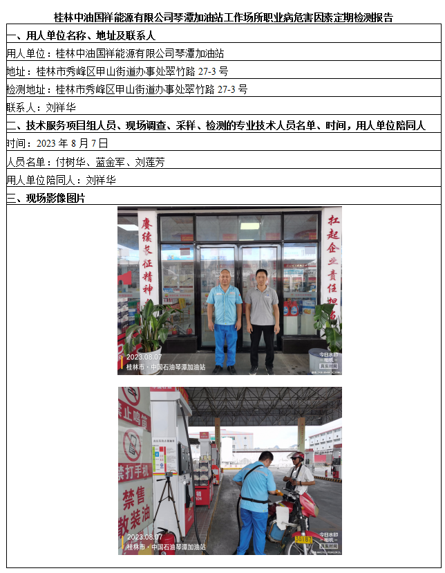 桂林中油國祥能源有限公司琴潭加油站工作場所職業(yè)病危害因素定期檢測報告