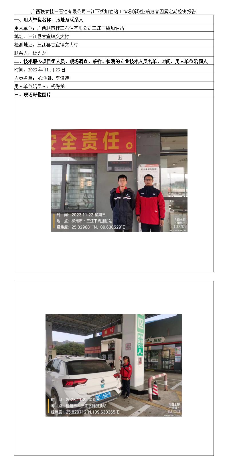廣西聯(lián)泰桂三石油有限公司三江下線加油站工作場(chǎng)所職業(yè)病危害因素定期檢測(cè)報(bào)告