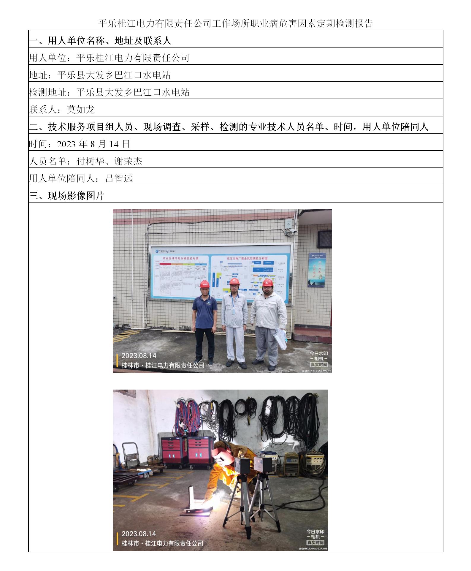 平樂桂江電力有限責(zé)任公司工作場所職業(yè)病危害因素定期檢測報告