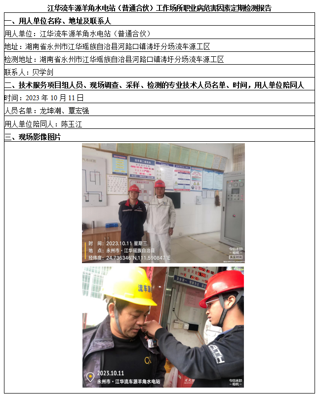 江華流車(chē)源羊角水電站(普通合伙)工作場(chǎng)所職業(yè)病危害因素定期檢測(cè)報(bào)告