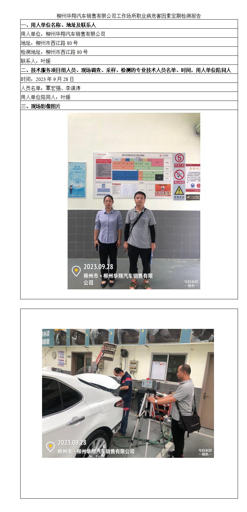 柳州華翔汽車銷售有限公司工作場所職業(yè)病危害因素定期檢測報(bào)告