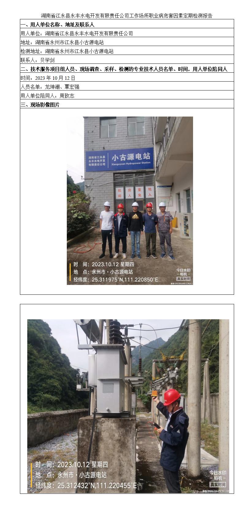 湖南省江永縣永豐水電開發(fā)有限責(zé)任公司工作場(chǎng)所職業(yè)病危害因素定期檢測(cè)報(bào)告