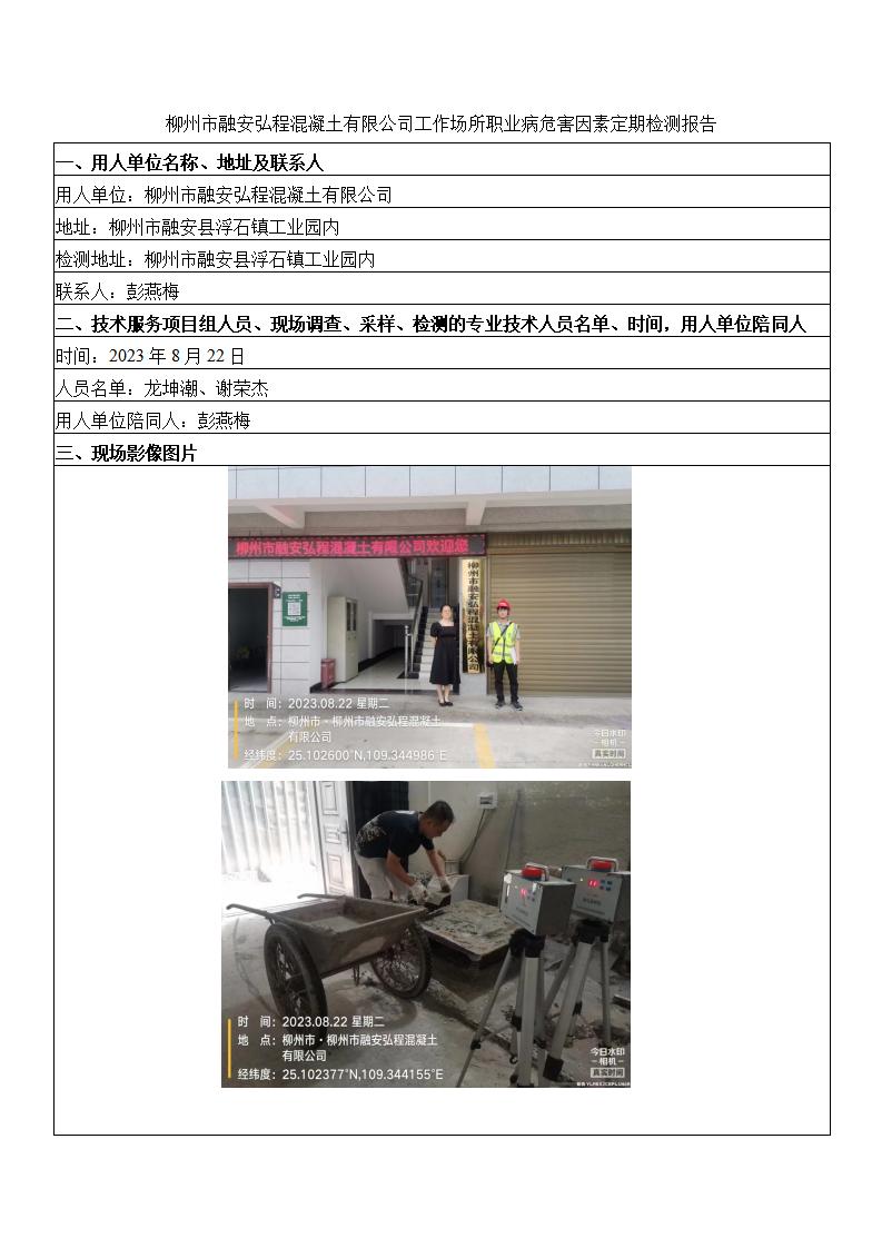 柳州市融安弘程混凝土有限公司工作場(chǎng)所職業(yè)病危害因素定期檢測(cè)報(bào)告