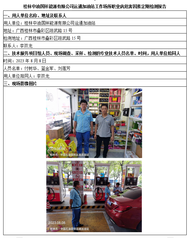 桂林中油國祥能源有限公司運通加油站工作場所職業(yè)病危害因素定期檢測報告