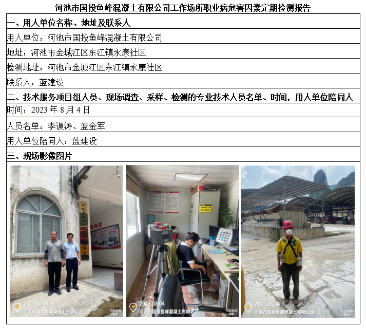 河池市國投魚峰混凝土有限公司定期檢測報告