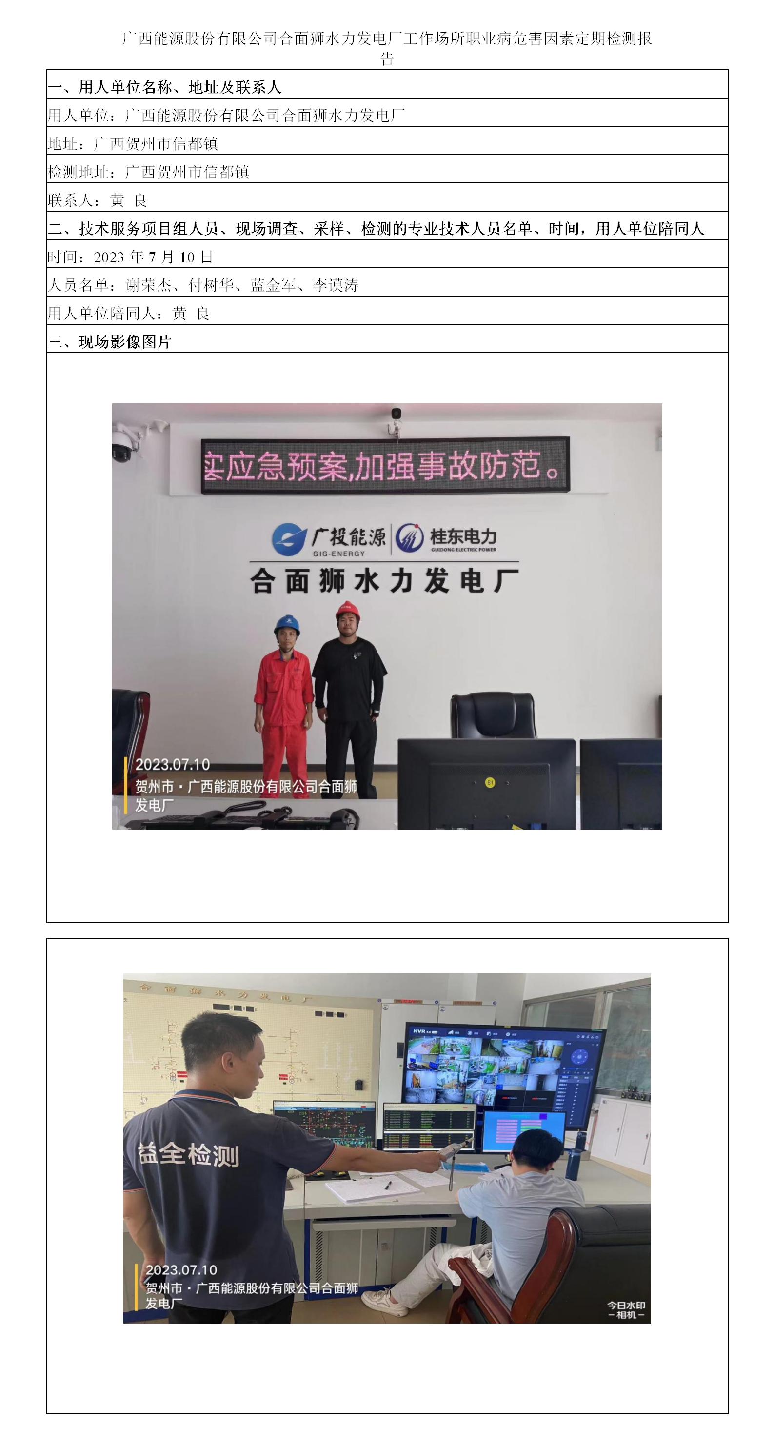 廣西能源股份有限公司合面獅水力發(fā)電廠工作場所職業(yè)病危害因素定期檢測報告