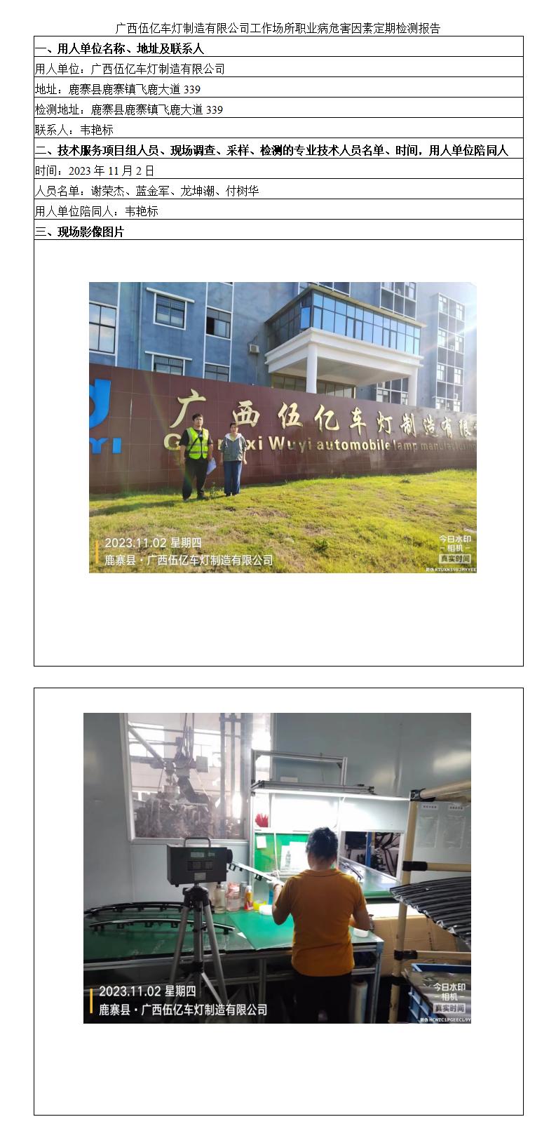 廣西伍億車燈制造有限公司工作場(chǎng)所職業(yè)病危害因素定期檢測(cè)報(bào)告