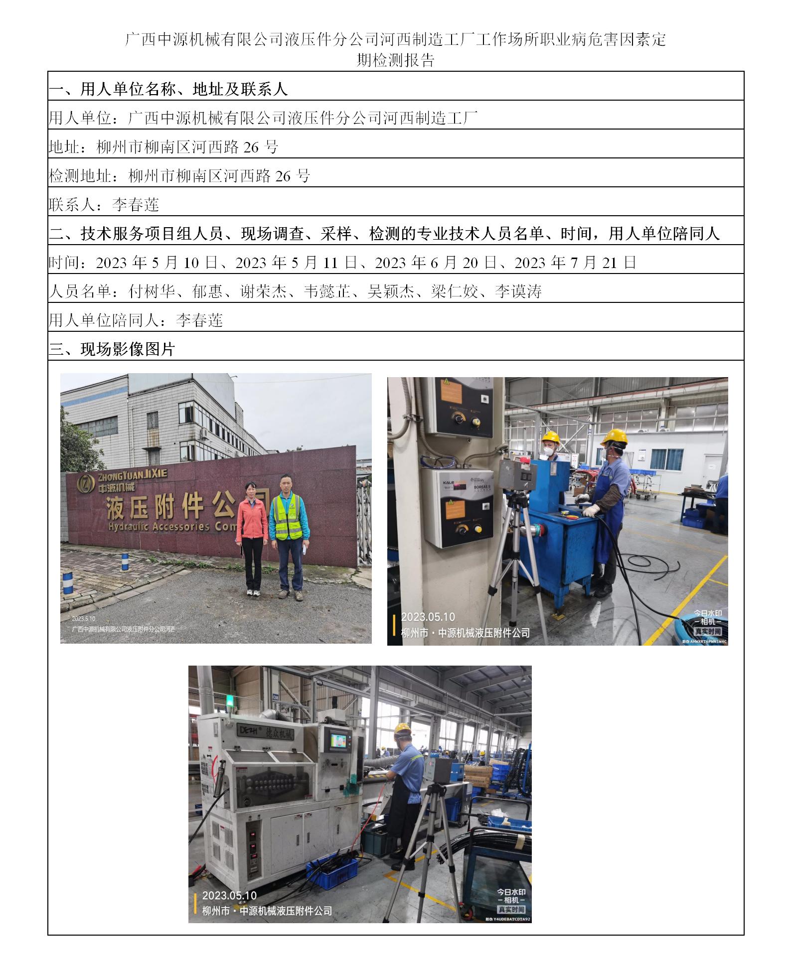 廣西中源機(jī)械有限公司液壓件分公司河西制造工廠工作場(chǎng)所職業(yè)病危害因素定期檢測(cè)報(bào)告