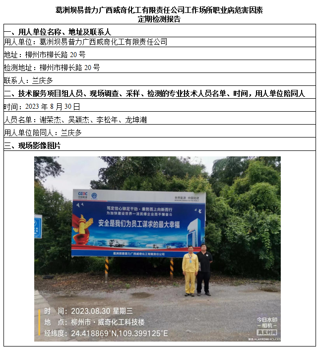 葛洲壩易普力廣西威奇化工有限責(zé)任公司工作場所職業(yè)病危害因素定期檢測報(bào)告